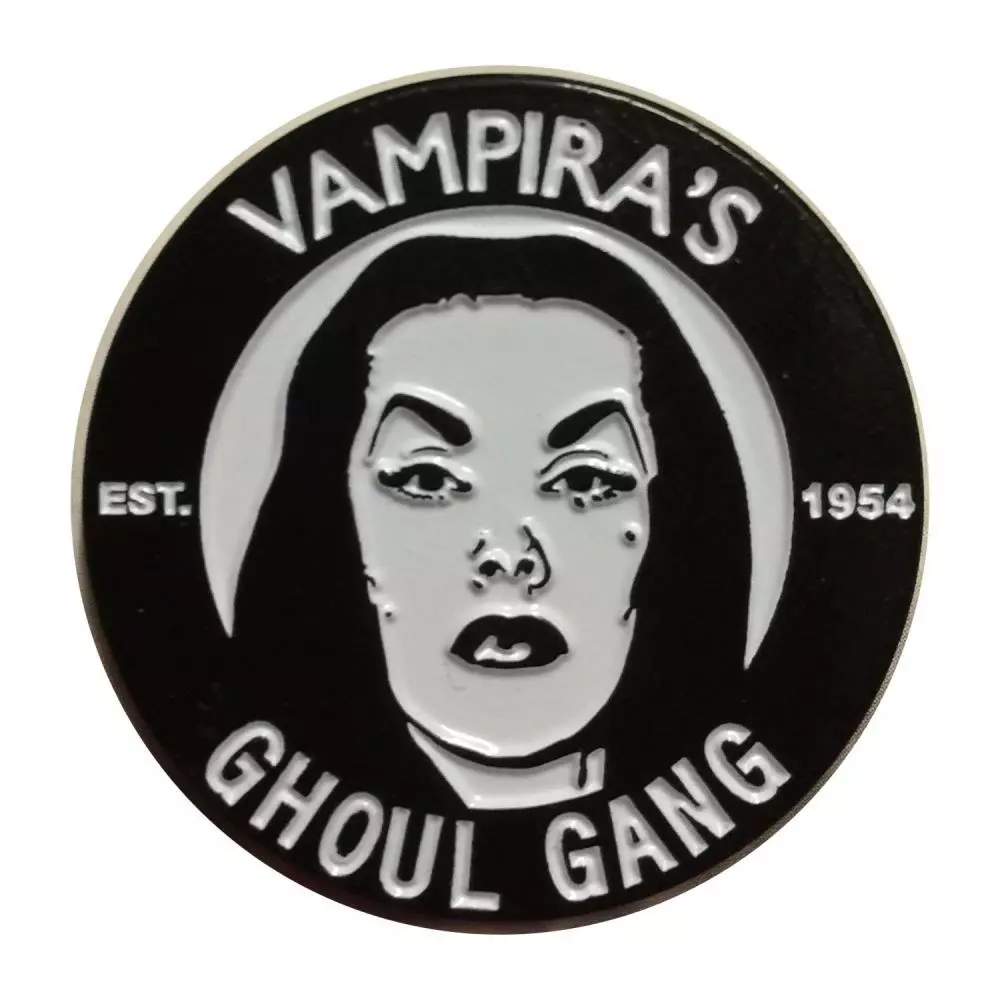 Vampira Ghoul Gang official licensed enamel pin badge. Size approx 1.25″ diameter