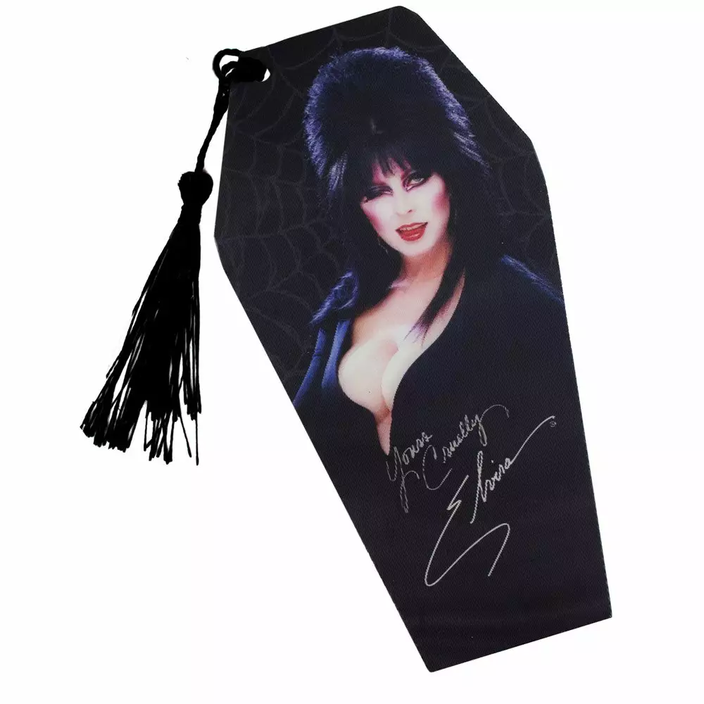 Officially Licensed Elvira Wink Lenticular Bookmark, Coffin shaped lenticular wink bookmark move it back and forth to watch elvira wink! Â Measures Height 6″ (15.24 cm) by 3″ (7.62cm) Lenticular Bookmark.