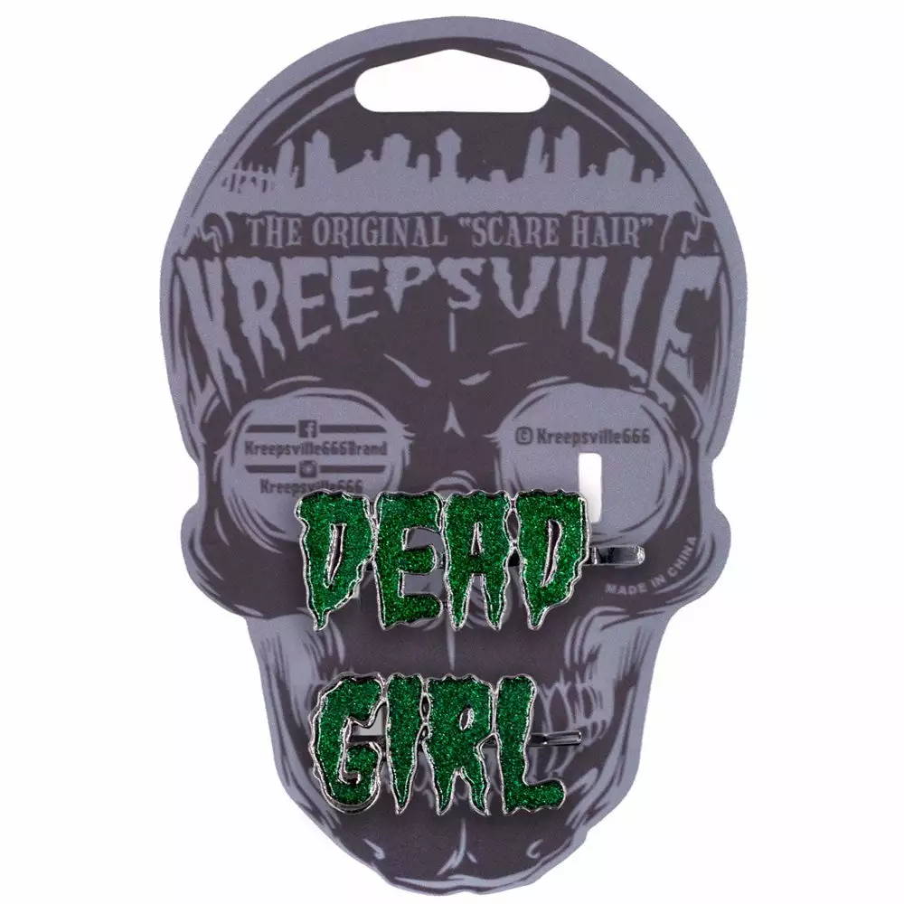 Dead girl text hair slides show your insatiable lust for the dead with these glitter text hair slides. featuring glitter enamel hair slides measuring approx.. 1.5 in. Â Â