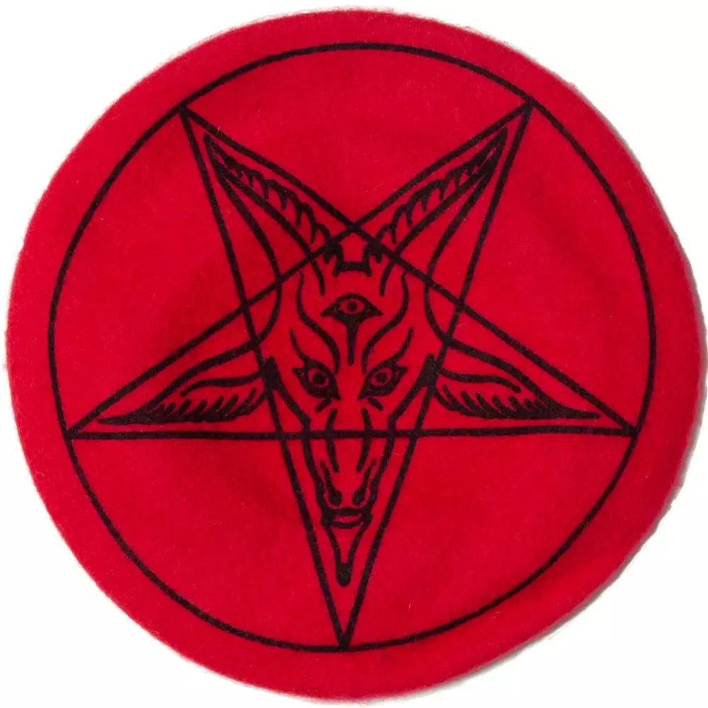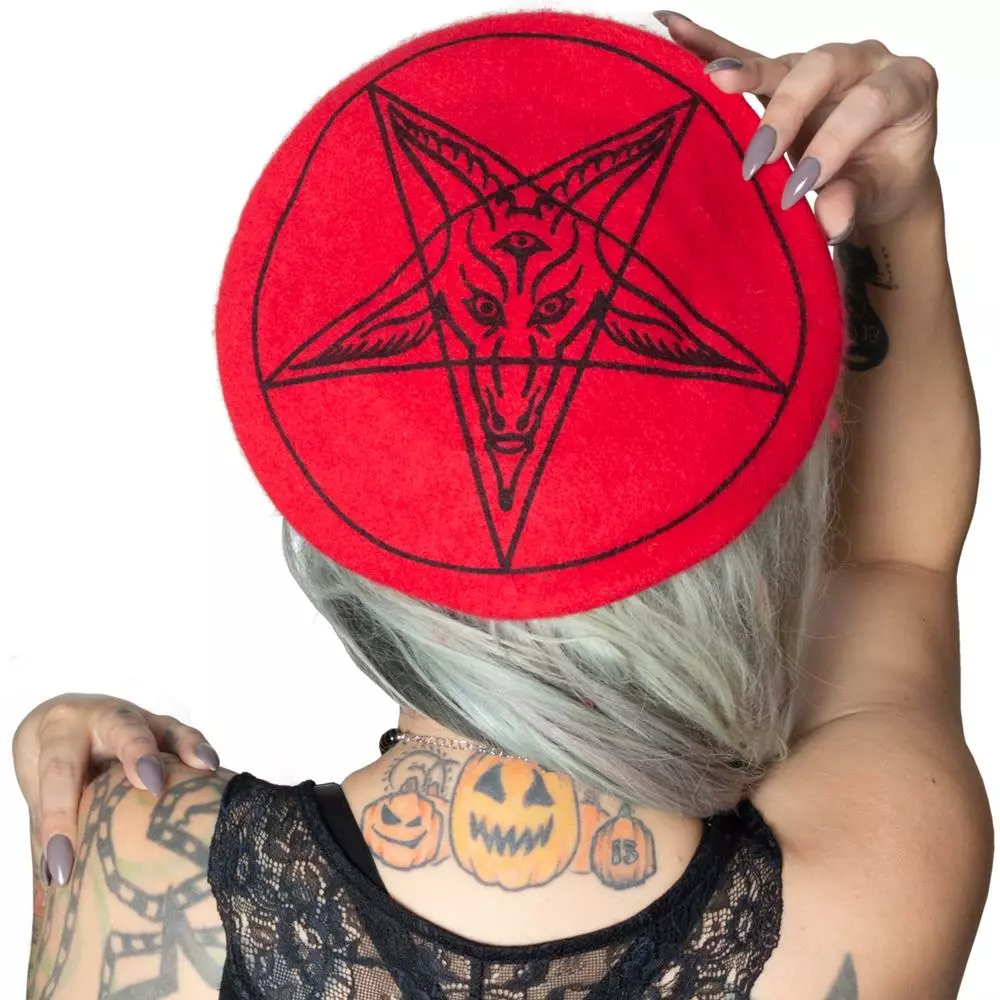 Show your allegiance to the dark side with Kreepsville’s beatnik berets! 90% wool 10% polyester berets, embroidered bapomet motif on front and printed satanic circle on top. One size fits most.