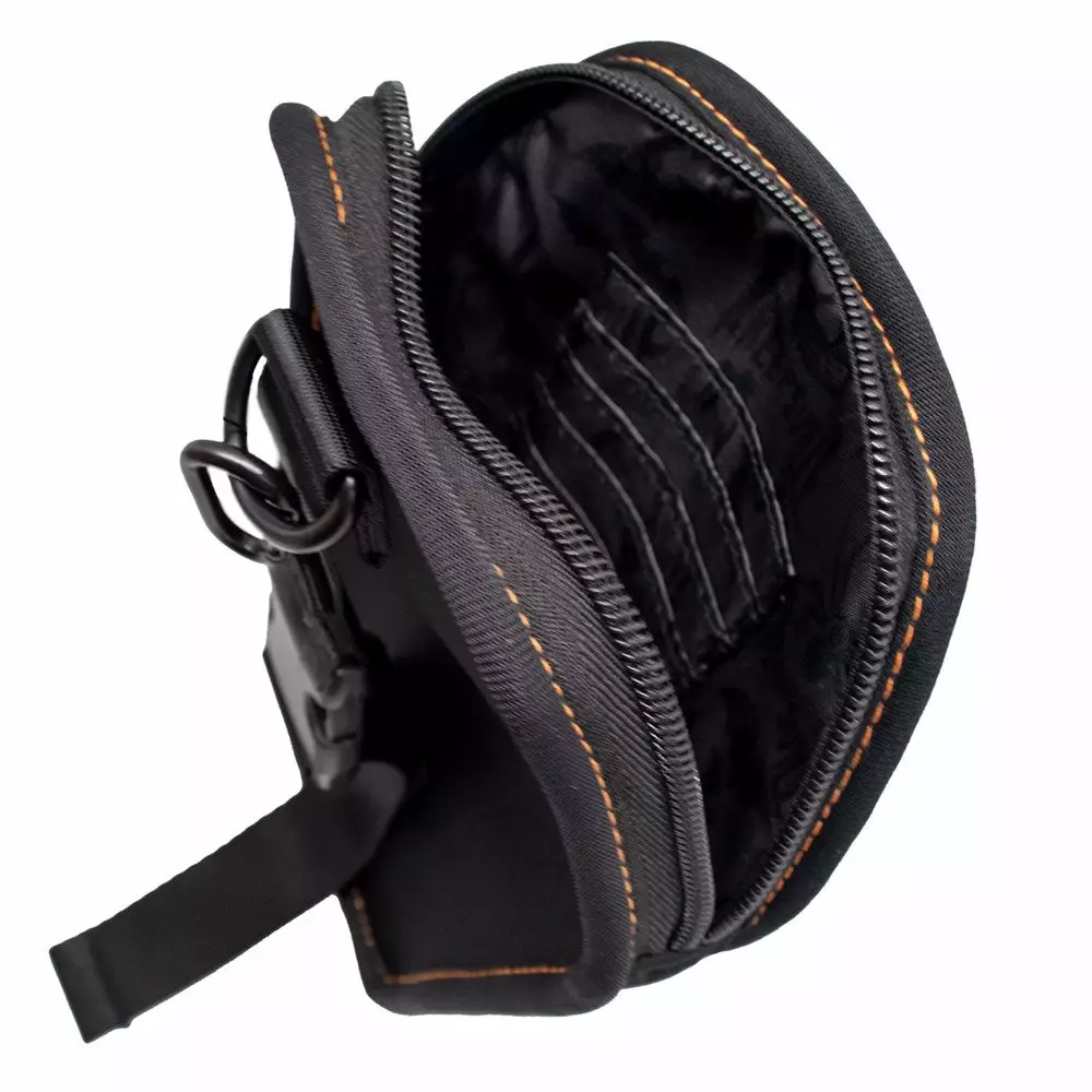 Graves Halloween Coffin Clip Pouch from Kreepsville. Coffin pouch comes with clip,  adjustable strap and card sections. Clip to your bag or hip to carry your stuff, use it for phones, drives, make up, severed fingers, guitar tuners. Size 5.5″ x 8″ x 1.25″ (14CM x 20.3CM x 3.2 CM)  with zip closure and back clip.