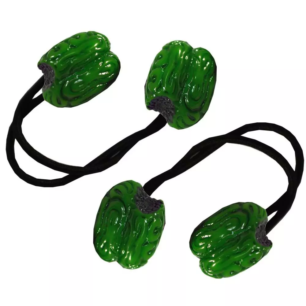 Kreepsville 666 Green Zombie Brain hair bands, plastic green bitten zombie brain on elastic hairbands, sold in pairs, size approx 3.5 cm (w)