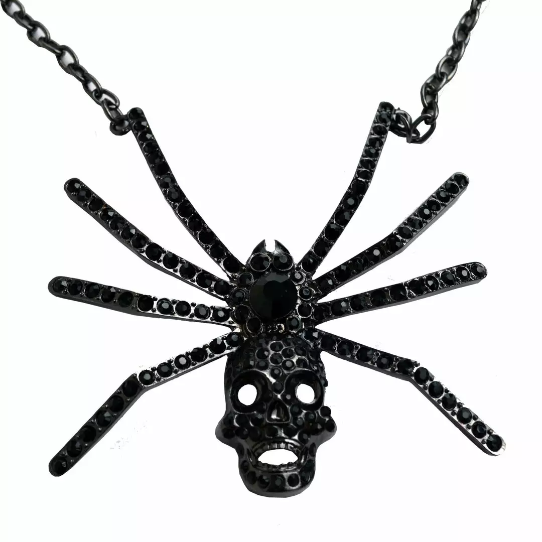 Kreepsville Jewelry Dia Spider Skull Necklace Black