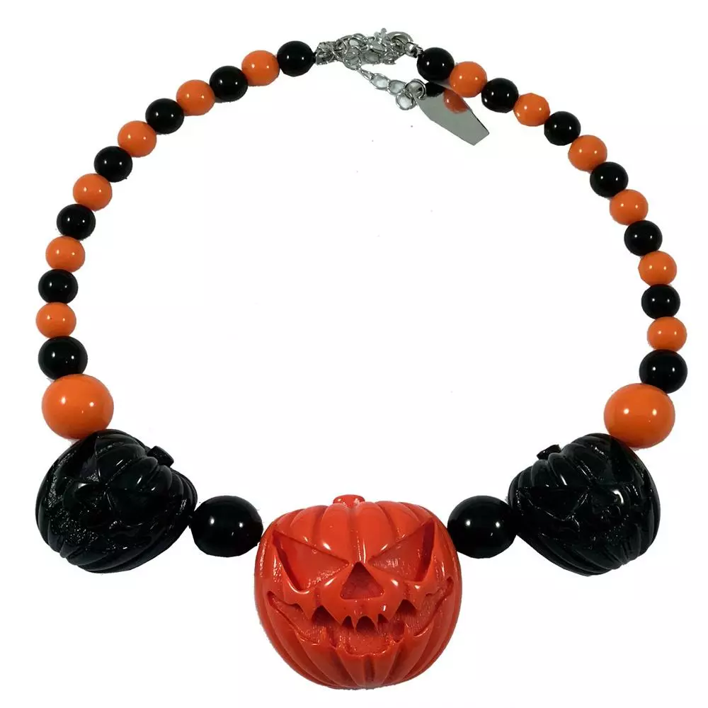 Kreepsville Jewelry Jack O Lantern Pumpkin Necklace Black/Orange