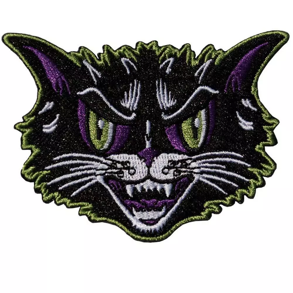 Kattitude head patch by kreepsville 666, embroidered iron on patch, size approx 3.25 in (8cm) high