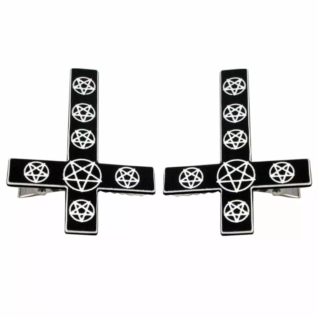 Kreepsville Shop The Look Inverted Cross Pentagram Hairslides Black