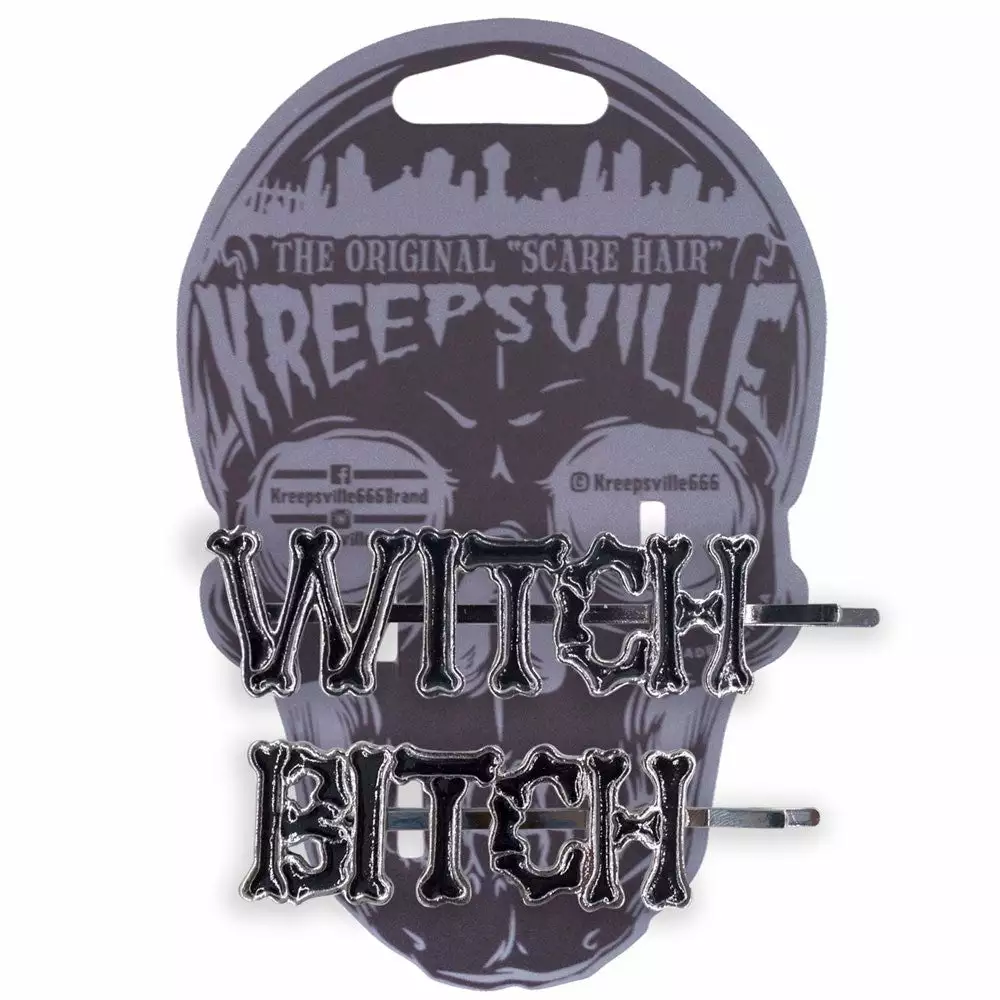 Kreepsville Witch Bitch Text Hair Slides Accessories