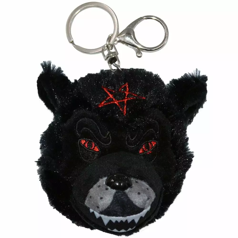 Howl at the moon!!! Wolfhead Plush Keychain. Super cute mini plush with embroidered pentagram, demonic red eyes and plastic nose! size approx 3. in W (8cm) 4 in. H (10cm)