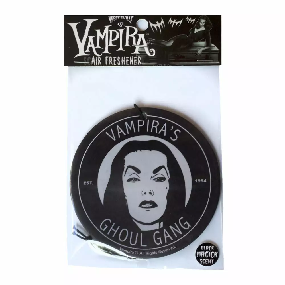 Join the gang, with our officially licensed Vampira Ghoul Gang Air Freshener with a black magic scent. approx. 3.25″ (8.5cm)